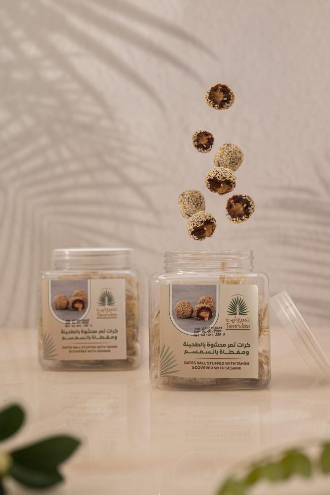 تمريه بالطحينه وكرات التمر المحشية بالسمسم من تمرولين هي خيارك الصحي للحلوى اللذيذة الغنية بالنكهات والقيمة الغذائية. استمتع بوجبات خفيفة مغذية ومتوازنة.